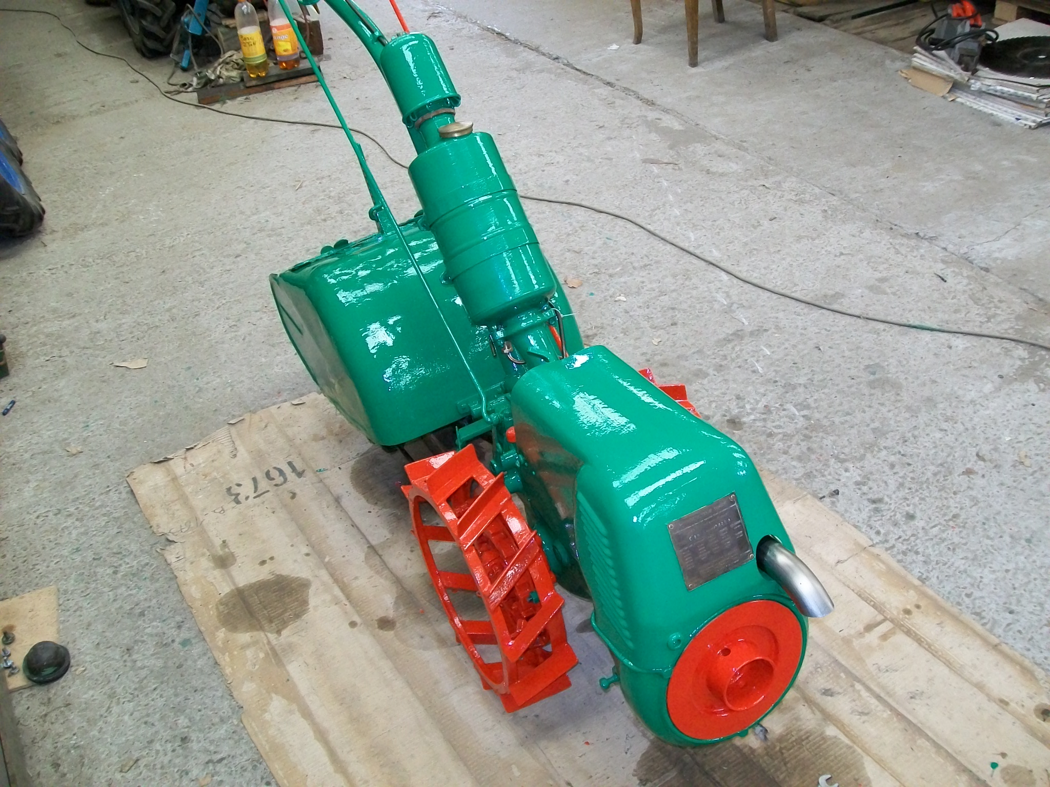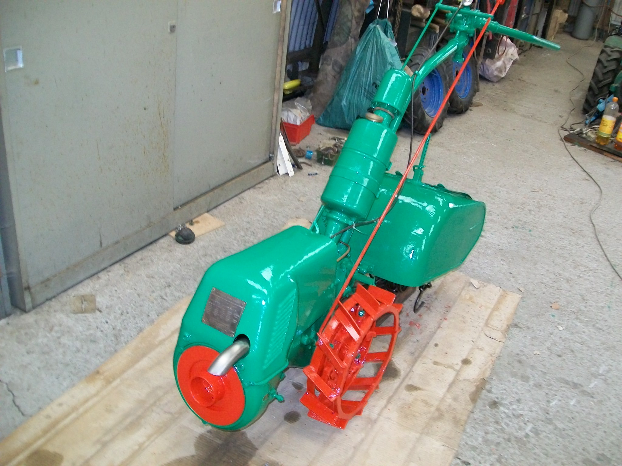 Il est motorisé par un moteur Simar essence deux temps, à balayage
