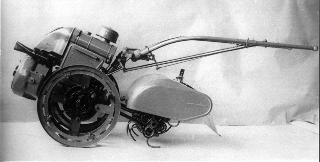 Ce motoculteur, en ordre de marche, a une masse de 215 kg.